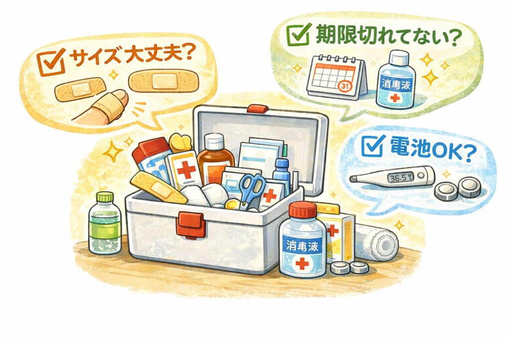 いざという時に「あ、絆創膏がない!」「今日やっている病院はどこ!?」とパニックにならないよう、今のうちにチェックしておきましょう。