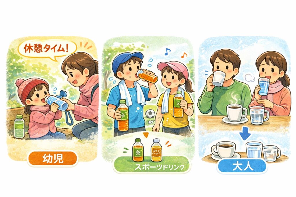 基本は水やお茶を中心に、たくさん動いた日は状況に応じて飲み物を選ぶと安心です - 【大人】
