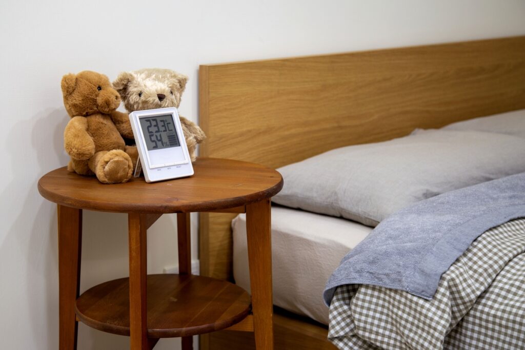 理想的な湿度は50~60%。湿度計があると、部屋の湿度が目で見てわかるので便利です。