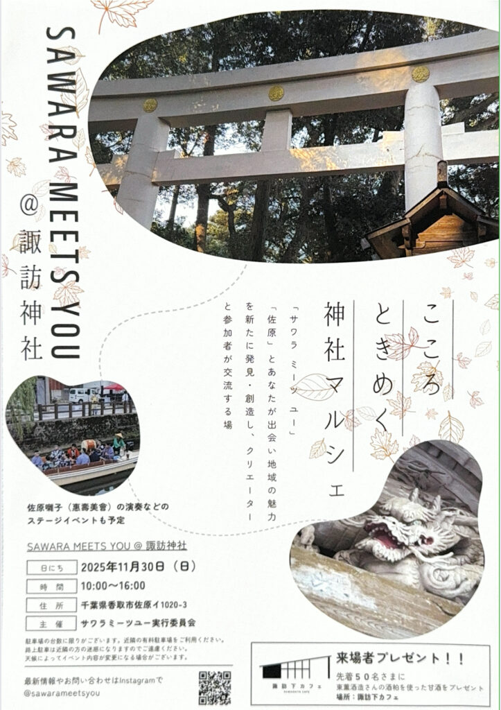 【佐原イベント予告】11/30(日)は諏訪神社「神社マルシェ」で甘酒プレゼント