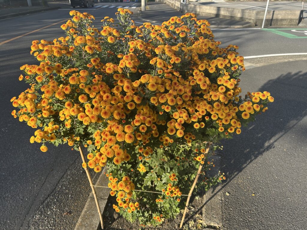 薬局の前を彩ってくれるこの菊は、見るだけで気持ちがふわっと明るくなる不思議な存在です。